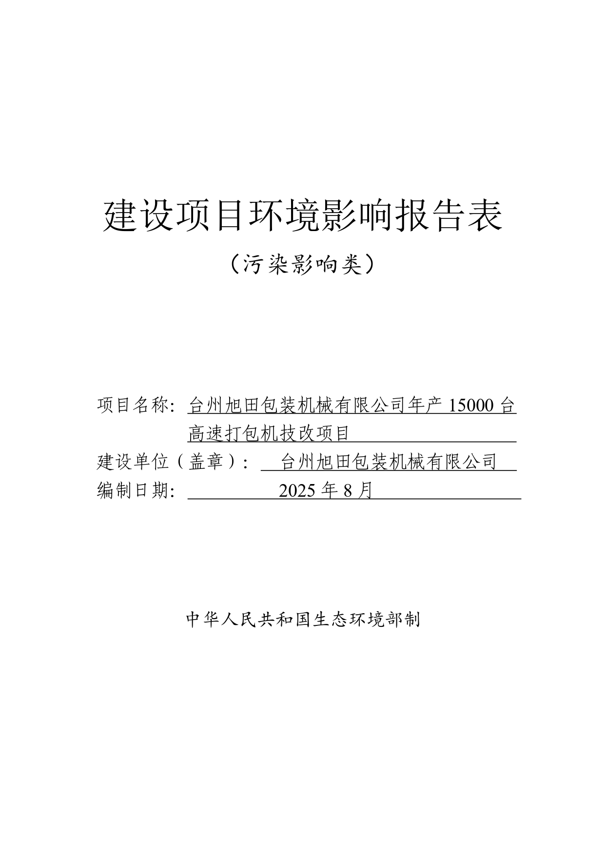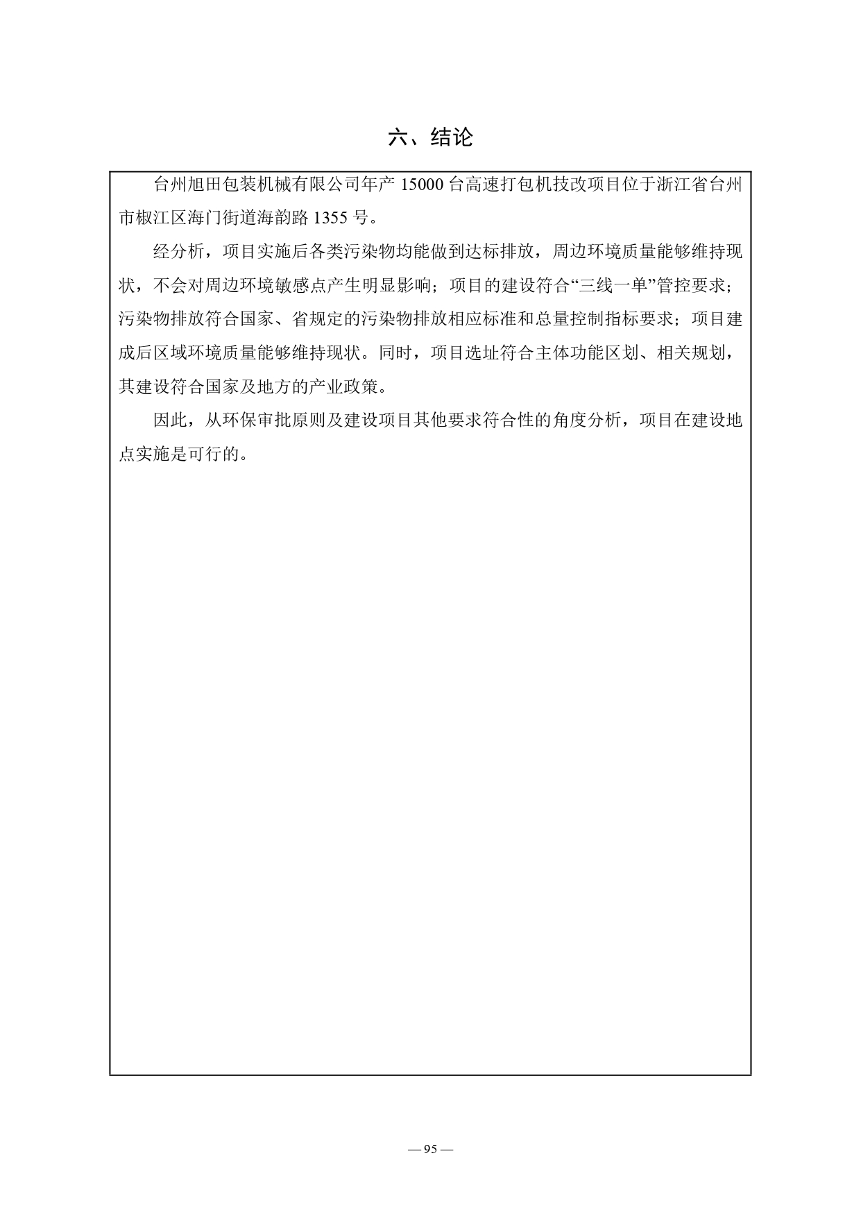 項目位于浙江省臺州市椒江區(qū)海門街道海韻路1355號,總投資510萬元,利用現有廠房擴建高速打包機生產線,建成后全廠產能達15000臺/年。